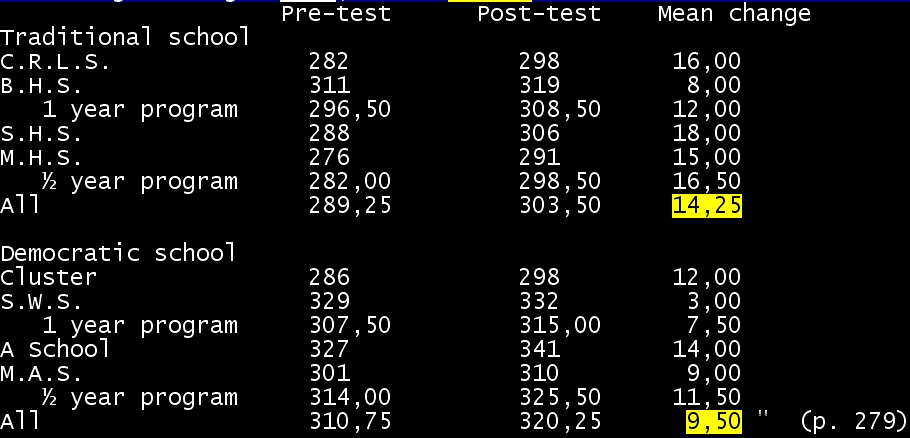 discusson programme, a notion supported by the results of Study 1." (p. 143) They report these results from Blatt's orignal intervention study: